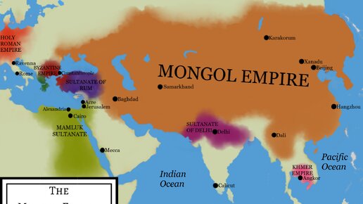 Монгольская империя (1206–1368) была основана Чингисханом (годы правления 1206–1227), первым Великим ханом или правителем монгольских народов. Чингисхан создал империю, объединив кочевые племена азиатских степей и создал эффективную армию с быстрой, легкой и хорошо скоординированной кавалерией. Эта империя простиралась в Азии от Черного моря до Корейского полуострова. Монголы наездники и лучники, оказались эффективными в Средней Азии и за ее пределами, побеждая армии в Иране, России, Восточной Европе, Китае и многих других местах...