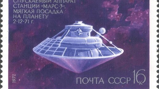 2 декабря на Марс благополучно сел советский аппарат "Марс-3". Он привёз небольшой самоходный прибор, который мог бы считаться первым марсоходом, если бы... Спускаемый аппарат межпланетной станции "Марс-3" благополучно опустился на поверхность Марса, а 1,5 минуты спустя начал передачу сигналов на Землю. На самом деле, почти благополучно. Увы, уже 14,5 секунд спустя передача прекратилась и связь с аппаратом была потеряна навсегда. Исследователи считают, что причиной была сильнейшая пылевая буря. А...
