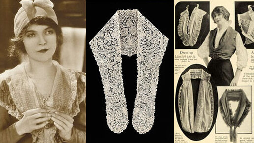Немного вернусь назад. Изначальная статья была о воротниках 20-30-х годов, а в этой захотелось поднять тему более раннего периода — воротники 18-19 веков. В моей коллекции они собраны в разделе «древняя мода». Повторяю - я не эксперт. Мне самой захотелось разобраться в названиях всей этой красоты. И вот что получилось. Первый вид воротников — «фишю» (1) или маленькая косынка. Изначально суть такого платочка состояла в том, чтобы прикрыть глубокий вырез на платье, сделав наряд более пристойным....