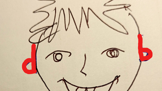 Как-то уже писала о том, что если ребенок путает английские буквы "d " и "b ", мы рисуем рожицу: Многие дети путают буквы b\d , d\g, b\g. Итак, чтобы не путать "d " и "b ", опять вчера рисовали рожицы: Мы называем этого персонажа Дибишка. Ведь буквы, изображающие уши, произносятся как "ди" и "би". Дети со смехом назвают его "дибил", и я каждый раз поясняю, что слово "дебил" пишется через "е"...