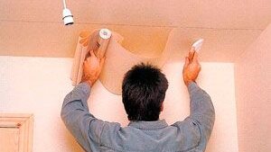 Оклеиваем потолок обоями.