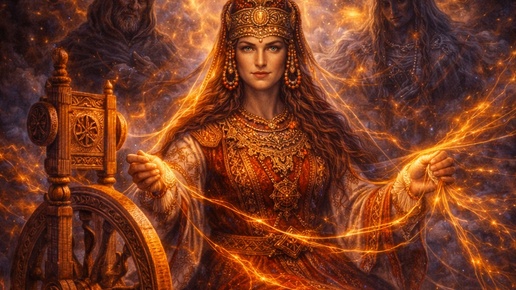 Её нельзя было перечитать, переписать или отменить подписью. Судьбу пряли. И в центре этого представления стоит Макошь — не «добрая мать» и не сказочная покровительница рукоделия, а древняя сила, управляющая самой тканью бытия. Прялка в её руках — не бытовой предмет.