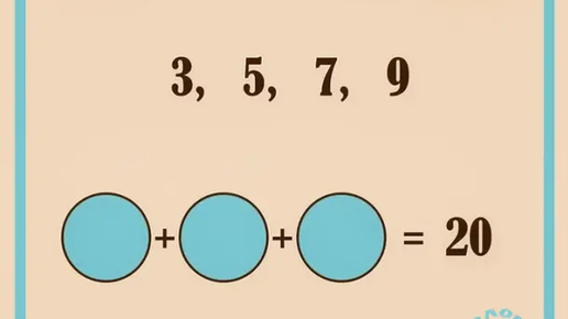 Привет, мастер логики! Перед тобой — загадочная схема с пустыми кругами. Твоя задача: заполнить их числами 3, 5, 7, 9 так, чтобы уравнение сошлось. Звучит просто? Лишь немногие находят верное сочетание за первую минуту! Твоя миссия: - мгновенно «схватить» структуру уравнения; - перепробовать возможные комбинации чисел; - найти единственно верный порядок цифр; - дать ответ до сигнала таймера. Как пройти испытание: - Не кидайся ставить числа наугад — сначала проанализируй схему: где стоят знаки действий, какие части уравнения уже видны...