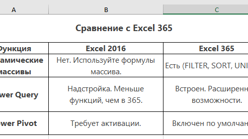 Даже без динамических массивов и новых функций Excel 365, версия 2016 остается мощным инструментом. В этой статье вы узнаете, как использовать Power Query, формулы массива и Power Pivot для автоматизации задач, анализа больших данных и создания профессиональных отчётов. Power Query (в Excel 2016 называется «Получить и преобразовать данные») — инструмент для импорта, очистки и объединения данных из разных источников (Excel, CSV, веб-страницы, базы данных). Результат: Чистая таблица, которая обновляется при изменении исходников (правая кнопка → Обновить)...