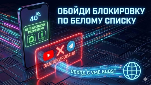 Спойлер: если лень читать, то обойти можно с помощью VME Boost Вы берете телефон, а у вас не работает ничего: ни соцсети, ни YouTube, ни мессенджеры. Но при этом приложение банка и, возможно, Госуслуги открываются. Это не сбой. Это - активация режима «белых списков» (или «глушилок»). В этой статье мы объясним, как это работает, почему 99% VPN в такой ситуации бесполезны, и как VME Boost решает эту проблему. Это самый жесткий вид блокировки. Оператор не блокирует отдельные сайты, а блокирует ВЕСЬ интернет-трафик по умолчанию...