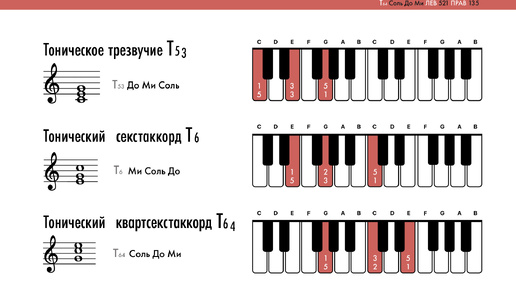 Тоническое трезвучие, секстаккорд и квартсекстакорд: До мажор