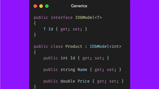 Бывают такие ситуации, когда необходимо сделать реализацию для типа данных, например вернуть данные по умолчанию. Или как работать с классом, где нужно сделать поиск по уникальному идентификатору (пример картинка), а у классов ID разных типов данных? Для реализации этого существуют обобщения. Подробнее в этой статье. Что это? Термин обобщение, по существу, означает параметризированный тип. Особая роль параметризированных типов состоит в том, что они позволяют создавать классы, структуры, интерфейсы, методы и делегаты, в которых обрабатываемые данные указываются в виде параметра...