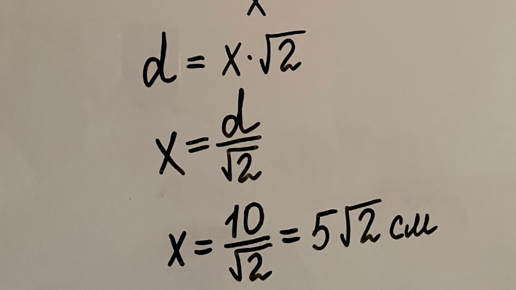 📍Задача: Квадрат имеет диагонали длиной 10 см. Найдите стороны квадрата.
