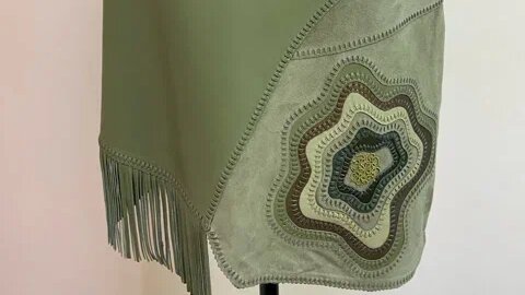 Дорогие друзья, сегодня я хочу показать вам юбку, которую с удовольствием ношу уже почти пятнадцать лет, и за это время она не потеряла для меня своей привлекательности. Эта моя юбка - пример того, насколько такой материал как кожа является практичным, долговечным и красивым. А также пример того, что он дает толчок любой фантазии, которую можно воплотить в одежде, в сумках и в любых других изделиях из натуральной кожи. Юбка сшита из двух видов кожи. Лицевая кожа - это шеврет, выработанный из шкур овец...