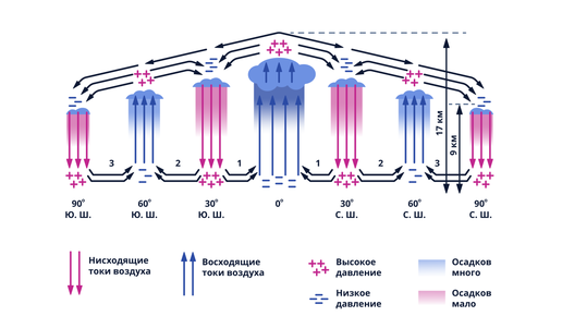 Атмосферное давление — это давление воздуха, которое он оказывает на все находящиеся в нём предметы и на земную поверхность. Земля нагревается солнечными лучами по-разному в разных точках Земли, и поэтому воздух нагревается от земли также неравномерно. Из-за этого температура воздуха в разных частях планеты бывает разной. Холодный и более тяжёлый воздух опускается вниз к земле, а тёплый и лёгкий поднимается вверх. Из-за этого на Земле образуются пояса с низким и высоким атмосферным давлением — например, в экваториальных и полярных широтах...
