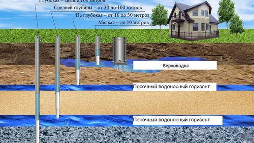 Подземные водоносные пласты, в зависимости от глубины залегания и характера окружающих пород, подразделяются на несколько видов. Наименьшим содержанием посторонних примесей отличаются артезианские водные слои, располагающиеся на значительных глубинах. Точного ответа, сколько метров глубина артезианской скважины, дать невозможно. В одних случаях, артезианский бассейн может находиться на глубине от нескольких десятков, до нескольких сотен метров под поверхностью земли. Поэтому вопрос: «С какой глубины скважина считается артезианской?», не совсем корректен...