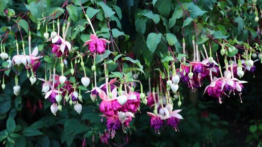 Сортов фуксии очень много: юбочки белые, розовые, с прожилками сиреневыми, розовыми, тычинки которых свисают из колокольчика. Несметное количество разновидностей фуксии. Разнообразие цветов и оттенков этого удивительного цветка приводит в восторг любого любителя цветов. А знаете что мне нравится в этом цветке? Огромная жизнестойкость и жизнеспособность. Ее выращивают везде, на подоконниках, на лоджиях на дачах, существует обычные фуксии и ампельные. Фуксия цветёт на концах побегов появившихся текущем году...