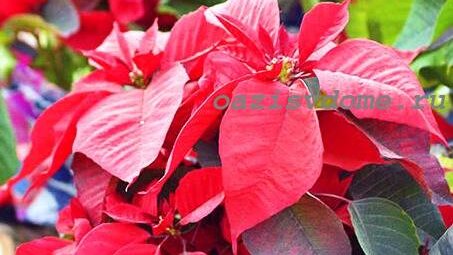 Пуансеттия (пуансетия) или Рождественская звезда относится к немногочисленным цветущим растениям, которые цветут зимой. Свое название цветок получил потому, что зацветает он к Рождеству. Однако сами цветки пуансеттии невзрачные. Декоративную ценность представляют прицветники, которые могут быть яркими красными, розовыми, желтыми, белыми. Благодаря селекционерам сегодня можно увидеть пуансетии даже с двуцветными прицветниками. Эти необычные, цветущие зимой цветы принято дарить друзьям и близким на Рождество...