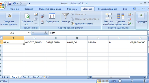 В этом уроке расскажу как разбить текст по ячейкам разделенные пробелом, каким-то другим знаком. Задача: Имеется документ MS Excel, в котором в одной из ячеек написано предложение или просто набор слов разделенных пробелом. Необходимо распределить слова, по отдельности в каждую ячейку, не прибегая к ручному разделению. Для этого нам необходимо воспользоваться таким инструментом как "текст по столбцам". В появившихся окнах жмем Далее и в последнем Готово Открываем вкладку Данные выделяем ячейку, в...