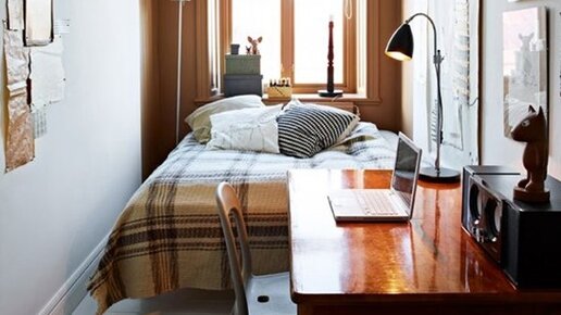 Здесь собраны несколько идей, которые можно применить даже в интерьере самой маленькой комнаты. Когда мы говорим маленькая комната — подразумевается, что кровать занимает почти половину! Однако грамотное зонирование и правильная расстановка мебели отчасти помогают решить вопрос небольшого пространства. Разумеется, принять компанию из 15 гостей вряд ли получится, но одному или даже вдвоем жить можно вполне комфортно...