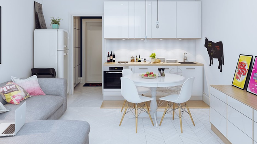 Если вы мечтаете не разорившись обустроить собственную небольшую студию, но не знаете, с чего начать, у нас есть неплохое решение. Покажем на реальном примере и товарах, как повторить светлый, функциональный интерьер студии площадью всего 25 кв. метров. Вот именно этот интерьер на фото ниже мы и будем стараться повторить. Давайте рассмотрим ключевые элементы этого пространства. Сразу на входе, по длине всей стены находится компактный кухонный гарнитур с двухконфорочной плитой и встроенным духовым шкафом в нижней части...