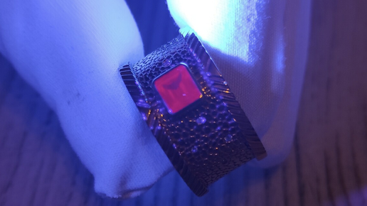 При облучении длинноволновым УФ-светом в трещинах рубина проявляются голубовато-белые участки, похожие на мел. Это указывает на наличие стеклянного наполнителя, который растекается по трещинам...