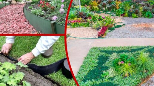 Установка бордюрной ленты на клумбе. Красивое, экономичное и простое ограждение садовых грядок.