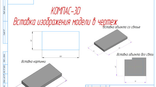 Один из самых популярных вопросов, которые задают пользователи КОМПАС-3D. Как вставить изображение 3D модели в чертеж? Посмотреть на разные методы можно в видеозаписи: Кому лень смотреть. Существует несколько методов. Первый метод, самый популярных и стабильный из методов, сохранить изображение модели картинкой. Для этого выбираем команду "Сохранить как" и выбираем доступные растровые форматы. Далее размещаем в чертеже. Второй метод. Выполнить команду Вставка/объект/создать из файла, без указания...