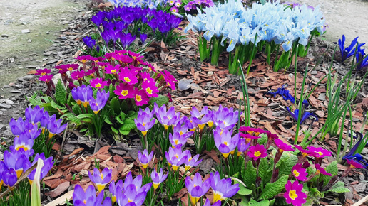 Для своего межколёсного цветника с первоцветами, мне пришлось отвоёвывать у супруга пространство, и я успела в последний момент, уже был рассыпан и утрамбован отсев, устанавливалась деревянная опалубка, чтобы полностью забетонировать дорогу. Так получилось, что заезд для машины пролегает почти через весь участок, то есть заезжаешь в ворота и паркуешься под навесом возле дома. Дорога прямая, водитель опытный, поэтому я решила, что между колёс бетон не нужен, я смогу эту полоску земли использовать либо для пользы, либо для красоты...