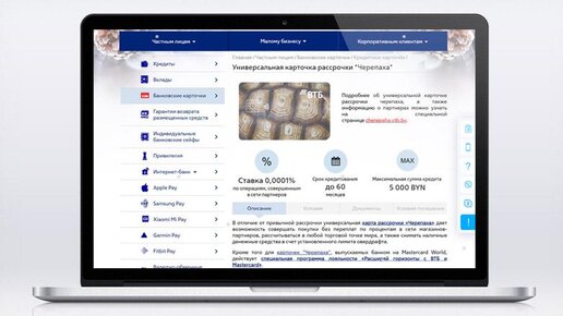 Карта «Черепаха» – универсальное решение от Банка ВТБ (Беларусь), благодаря которому можно оплачивать товары и услуги в кредит, а также делать покупки в рассрочку без переплаты в магазинах-партнерах. Карта выпускается на физическом носителе (Mastercard Classic Unembossed/World) или в виртуальном формате (платежная система «Мир») сроком на 5 лет в белорусских рублях с максимальным лимитом 5000 BYN.Особенности карты «Черепаха»Основное достоинство карты – возможность делать покупки в рассрочку без переплаты в магазинах-партнерах банка (ставка в этом случае составляет 0,0001% годовых)...