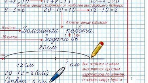 В начальной школе учителя показывают детям как правильно оформлять работы по математике, но вот такая наглядная памятка дома перед глазами на столе под стеклом или на стене перед столом очень нужное пособие. Пока не запомнится. И вот ваш ребенок заканчивает начальную школу и все усложняется. Появляются примеры умножения столбиком, а в них, как известно, по мере умножения чисел результаты смещаются влево. Как же сохранить это правило при котором нужно между столбиками сохранять промежуток в 3 клеточки...