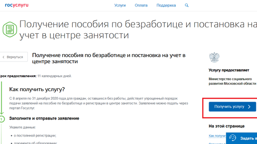 После перехода по ссылке откроется форма для получения услуги (на фото выше), нужно будет нажать кнопку Получить услугу...