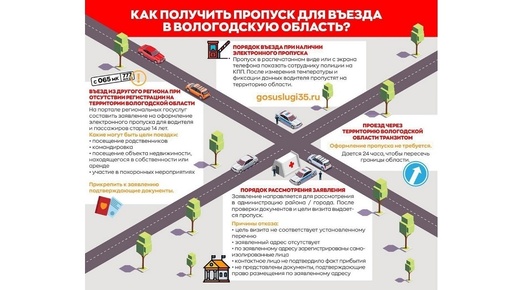 Ограничение на въезд в регион распространяется пока только на граждан, не имеющих постоянную или временную регистрацию на его территории. Уже во вторник 28 апреля правительство области должно утвердить порядок оформления электронных пропусков. Процедура будет осуществляться дистанционно - посредством портала государственных услуг. Лицо, намеревающееся въехать на территорию Вологодской области, обязано будет предварительно подать на региональном сайте заявление с указанием цели визита. Каждую заявку рассмотрят в том муниципалитете, адрес которого будет указан в заполненной форме...
