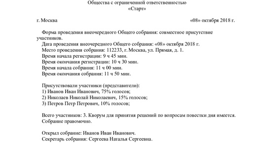 Процедура проведения очередного (годового) собрания ООО. Часть 1