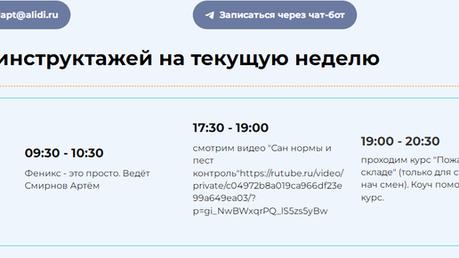 КАК ОФОРМИТЬ РАСПИСАНИЕ НА САЙТЕ Думаю, что больше всего пользователей сайтов с развивающим контентом раздражает когда есть дата, время, тема и... на этом всё. А вот конкретную ссылку нужно еще поискать. Я добавляю ссылку сразу в после названия. У rutube есть минус - чрезмерно длинные ссылки на видео. Моя ссылка выглядит непрезентабельно, да. Но так человек точно видит, что за ресурс используется. Иногда это бывает полезно. Позволяет избежать путаницы. Но бывают и более экзотические случаи. Однажды...