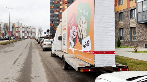 Яркая вывеска. Мимо такой точно не пройдешь. И сразу понятно, что цены на хризантемы и розы по современным меркам весьма демократичные. Все для настоящих романтиков. Но жители дома на Чароитовой улице ни романтику, ни её экономичность не оценили. Все силы они направили на борьбу с тем, кто поставил грузовик с рекламным щитом на прицепе во дворе их жилого комплекса. Машина оккупировала парковочные места несколько недель назад и за это время ни разу не сдвинулась с места. Здесь и так не хватает парковок, ведь машина есть почти у каждой семьи, проживающей в доме...