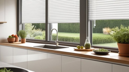 Как оформить окно на кухне рулонными шторами
