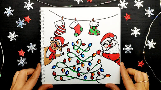 Всем привет, друзья, давайте сегодня, вместе со мной, оформим страничку в скетчбуке новогодними рисунками. Рисунки простые, вы можете сразу включить видео и рисовать вместе со мной, шаг за шагом. Если у вас нет скетчбука, возьмите простой листик А4 формата и разрежьте пополам...