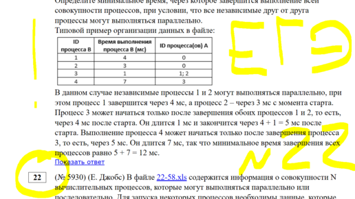 Задачи про процессы не так давно появились в ЕГЭ по информатике, расколов надвое мнения: кто-то считает их классными, другие думают, что им вообще не место в экзаменационных материалах. Но сложных среди них нет, а лишним балл на экзамене тоже не бывает. Давайте посмотрим на некоторые задачи с разборами. Начнем с этой задачи👇. Проще не бывает, но для понимания сути этих задач подходит идеально. Вот условие: Продолжим, поговорим о задаче с апробации. Решаем в экселе через =ВПР(). Намекаю на то, что...