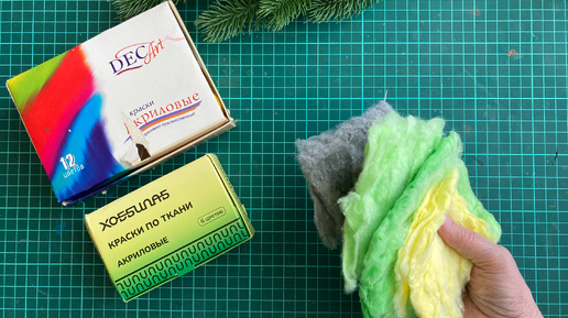 Крашу вату акриловыми красками для елочных игрушек. Подвожу итоги эксперимента