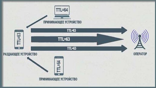 Приветствую! Данная статья несёт исключительно информационный характер, и не побуждает к действию. Многим известно, что некоторые операторы сотовой связи "блокируют" раздачу мобильного интернета на компьютер/ноутбук, без оплаты дополнительного пакета опций(от 50 рубей в сутки). Давайте разберёмся, как видит оператор раздачу с устройства. На рисунке выше показано, что параметр TTL(именно по нему отслеживается количество подключенных устройств) на смартфоне - 64. Когда Вы производите раздачу интернета на другое устройство - TTL второго устройства, и каждого последующего, уменьшается на 1...
