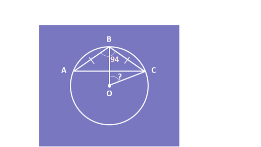 Окружность с центром в точке О описана около равнобедренного треугольника АВС, в котором АВ=ВС и АВС=94...