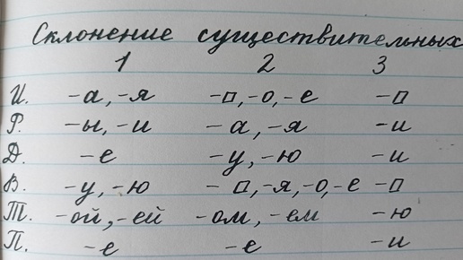 1. Проверка домашнего задания. Письмо по памяти. После записи четверостишья детям нужно определить склонения существительных. 2. Объявление тему урока. Актуализация знаний. Сегодня мы будем тренироваться определять склонения существительных. Рассмотрите таблицу в учебнике на стр. 15. Будем читать склонение существительных и составлять таблицу окончаний в тетради: 3...