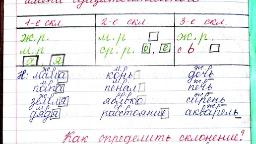 Как определить склонение имен существительных