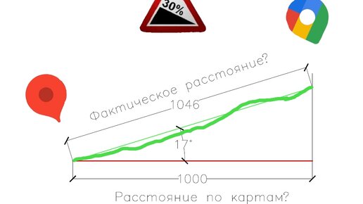 Задачей статьи будет определить, считают карты при прокладывании маршрута наклонное расстояние или горизонтальное проложение. Также получить разницу в длине между маршрутом по одинаковым X,Y от яндекс и гугл карт (гугл, иностранный владелец ресурса нарушает закон РФ). Простыми словами, под горизонтальным проложением мы понимаем расстояние которое объект преодолевает не по факту, а в проекции сверху. А вот наклонным расстоянием считаем фактически выполненный маршрут. Поскольку у нас нет изначальной уверенности, в том, что же используется на карте, необходимо это выяснить на тестовом отрезке...