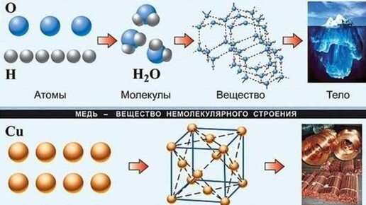 Вещества молекулярного и немолекулярного строения. Все вещества состоят из атомов или образованных из них ионов. Во многих веществах атомы соединяются между собой в более крупные частицы, называемые молекулами. Каждая молекула образует отдельную частицу вещества, в которой атомы между собой прочными связями. Такие связи называют химическими, они имеют электрическую природу. Молекула – устойчивая электронейтральная частица, состоящая из двух или более связанных между собой атомов. Про вещества, состоящие из молекул, говорят, что они имеют молекулярное строение...
