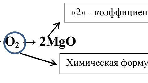 Химическая реакция – это превращение одних веществ (реагентов) в другие вещества (продукты), отличающиеся от них составом и (или) строением. При химических реакциях атомы не изменяются и число атомов каждого элемента сохраняется. К химическим реакциям относятся сгорание топлива, коррозия металлов, выплавка металлов из руд, гниение, фотосинтез, брожение и др. каждой химической реакции соответствует химическое уравнение. Химическое уравнение – условная запись химической реакции с помощью химических формул и коэффициентов...
