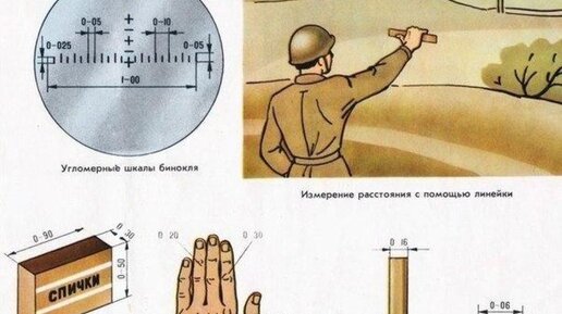 Очень часто разведчику требуется определять расстояния до различных предметов на местности, а также оценивать их размеры. Наиболее точно и быстро расстояния определяются посредством специальных приборов (дальномеров) и дальномерных шкал биноклей, стереотруб, прицелов. Но из-за отсутствия приборов нередко расстояния определяют с помощью подручных средств и на глаз.