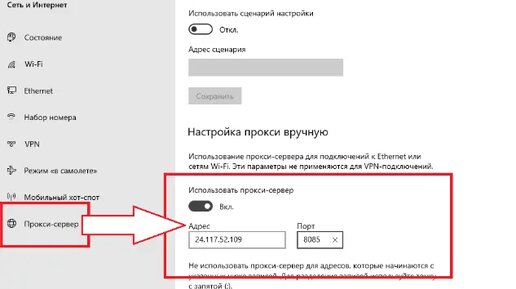 Прокси — это промежуточный сервер, который выполняет роль посредника между пользователем и целевым сервером. Сетевой порт — это число в диапазоне от 0 до 65535, которое указывает на конкретное использование прокси на вашем устройстве, будь то программа, веб-браузер, вся операционная система или определенные процессы. 1. Откройте меню "Пуск" и нажмите на значок шестеренки, чтобы перейти к параметрам системы. 2. В окне параметров выберите раздел "Сеть и Интернет". 3. Внутри раздела "Сеть и Интернет" найдите пункт "Прокси-сервер"...