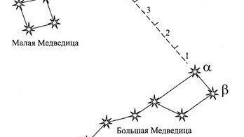 Чтобы найти на небосклоне Полярную звезду, необходимо отыскать созвездие Большой Медведицы. Соединив две крайние звезды "ковша" (А и B), мысленно продолжите эту линию на пять таких же расстояний: здесь и находится Полярная звезда. Она является последней звездой в хвосте созвездия Малой Медведицы. Это созвездие также состоит из семи, но менее ярких, звездочек, и имеет форму ковша, но меньших размеров...