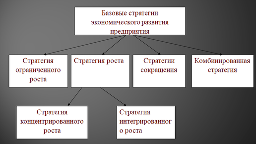 Понятие «стратегия» профессор истории бизнеса А. Чандлер сформулировал как «определение основных долгосрочных целей и задач предприятия и утверждение курса действий, распределение ресурсов, необходимых для достижения этих целей». В данном определении также подчеркивается необходимость предварительной оценки ресурсов, необходимых для реализации выбранной стратегии. Стратегией развития является рассчитанная на перспективу систему мер, обеспечивающая достижение конкретных намеченных организацией целей развития...
