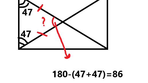 Диагональ прямоугольника образует угол 47° с одной из его сторон. Найдите острый угол между диагоналями этого прямоугольника.