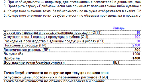 Мы составили для вас калькулятор точки безубыточности. Всё, что вам понадобится, это Эксель или Гугл-таблицы и нужные показатели. Забирайте и делитесь с другими Точка безубыточности — это один из самых важных финансовых показателей для бизнеса. По ней предприниматели планируют цены для продаж, сокращают расходы, прогнозируют, переживет ли компания кризис. Точка безубыточности — это когда предприятие выходит в ноль: продажи равны затратам, прибыли нет. То есть денег хватает только на текущие расходы...