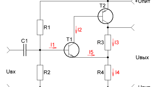 Схема не инвертирующего усилителя с большим Rвх на двух транзисторах...