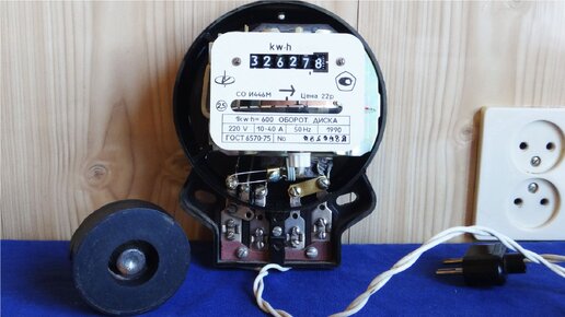 Магнит от старого динамика может повлиять на работу электрического счетчика. А вот что при этом происходит лучше проверить экспериментом. Разобрав старый электрический счетчик, я раскрасил рисками его алюминиевый диск, так чтобы можно было хорошо видеть направление и скорость вращения этого устройства. Удивительные вещи обнаружились буквально сразу - подключив счетчик к сети переменного тока я обнаружил, что даже без нагрузки алюминиевый диск начал вращаться и считать киловатт/часы. Да и сам счетчик судя по звуку гудения уже стал потреблять оплачиваемую мною по дневному тарифу электроэнергию...